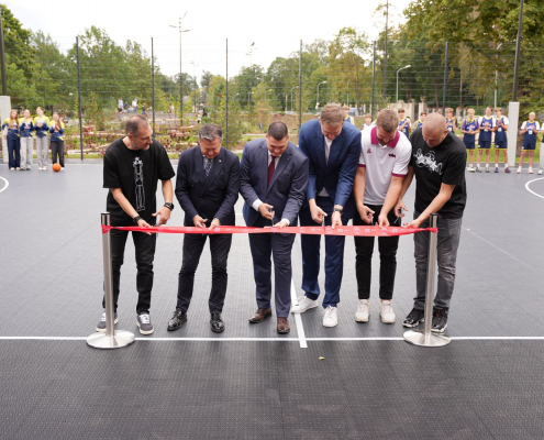 Uzvaras parkā atklāti multifunkcionāli basketbola laukumi – viens izveidots ar basketbolista Dāvja Bertāna atbalstu