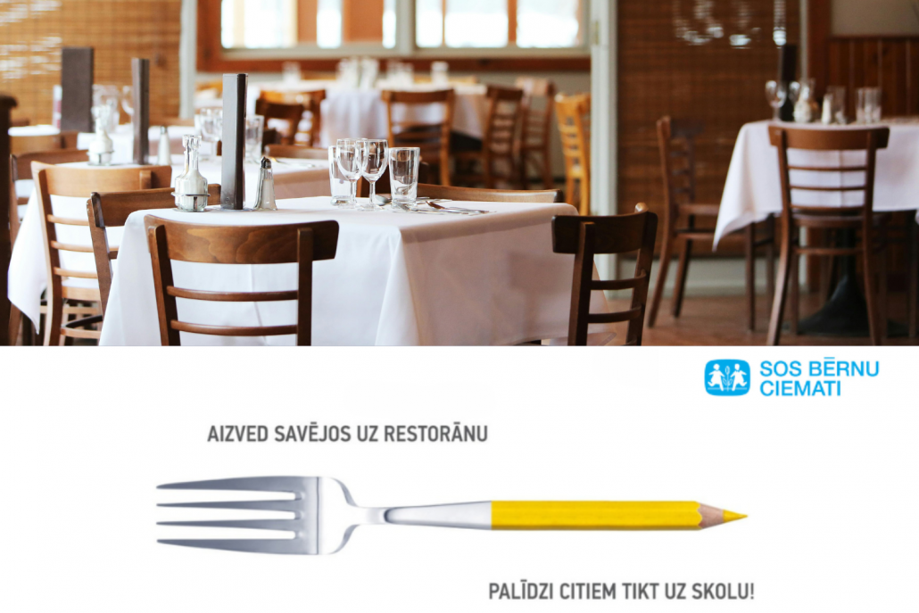 Akcijā “Aizved savējos uz restorānu un palīdzi citiem tikt uz skolu!” piedalās 3 pavāru restorāns Tam labam būs augt, B Bārs Restorāns, Bitīte Kafetērija, Brandīns, Cabo Cafe, Cafe 53, Casa Nostra, Cydonia, Divjūriņas, Fazenda Āgenskalns, Hercogs Mārupe, Hercogs Garden, Hesburger, KWB Street Food Restaurant, Mūza restorāns, Neptūns, Pavāru māja Līgatnē, Ramen Riga, Rātes Vārti, Rosemarine, Spura kafejnīca, StockPotXL, Street Burgers Liepāja, Vairāk Saules, Valdeko un Wolmar.