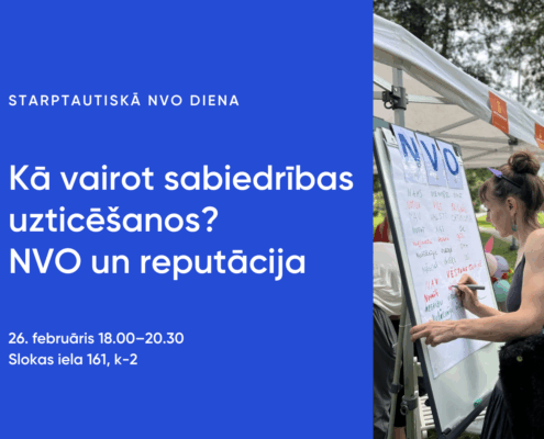 ImantaAtzīmējot Starptautisko nevalstisko organizāciju (NVO) dienu, NVO nams aicina uz pasākumu “Kā vairot sabiedrības uzticēšanos? NVO un reputācija”, kas notiks 26. februārī no plkst. 18.00 līdz 20.30 NVO nama filiālē Imantā (Rīgā,…