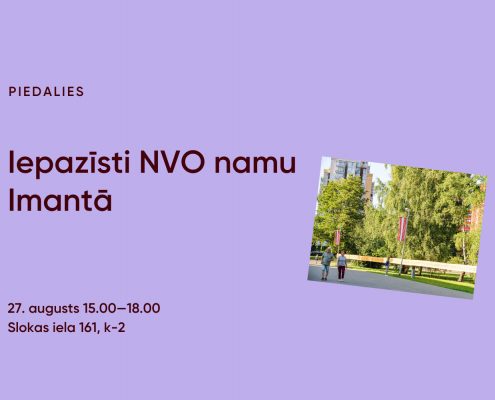 ImantaNVO nams aicina piedalīties informatīvā pasākumā “Iepazīsti NVO namu Imantā”, kas notiks 27. augustā plkst. 15.00-18.00 NVO nama Imantas filiālē Slokas ielā 161, k-2.