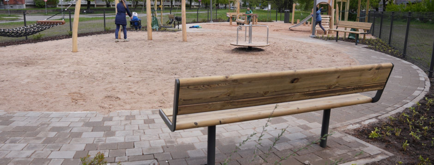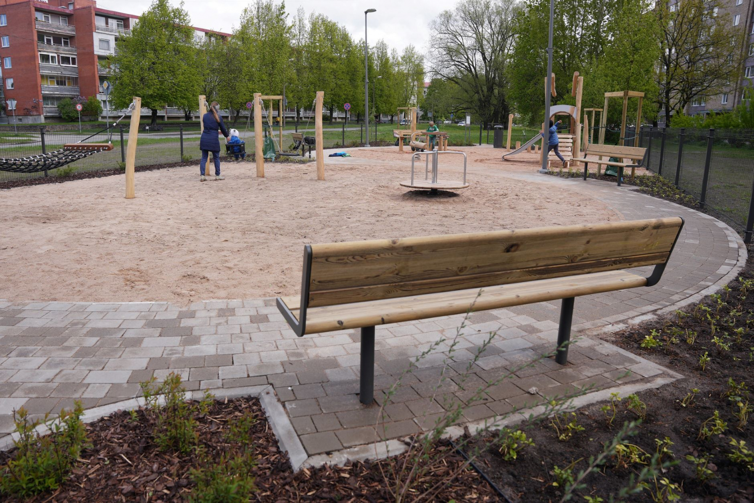 Šopavasar noslēgušies būvniecības darbi bērnu rotaļu un iedzīvotāju atpūtas laukuma izveidei Purvciema apkaimē.