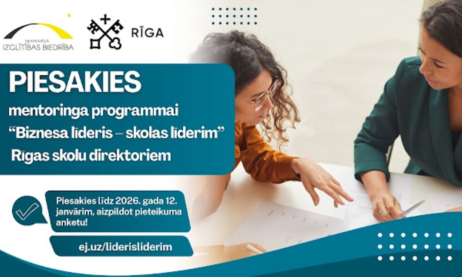 Lai atbalstītu Rīgas pašvaldības izglītības iestāžu vadītājus, Neatkarīgā izglītības biedrība (NIB) sadarbībā ar Rīgas pašvaldību izsludina pieteikšanos trešajai izglītības iestāžu direktoru mentoringa programmai “Biznesa līderis – skolas līderim”.