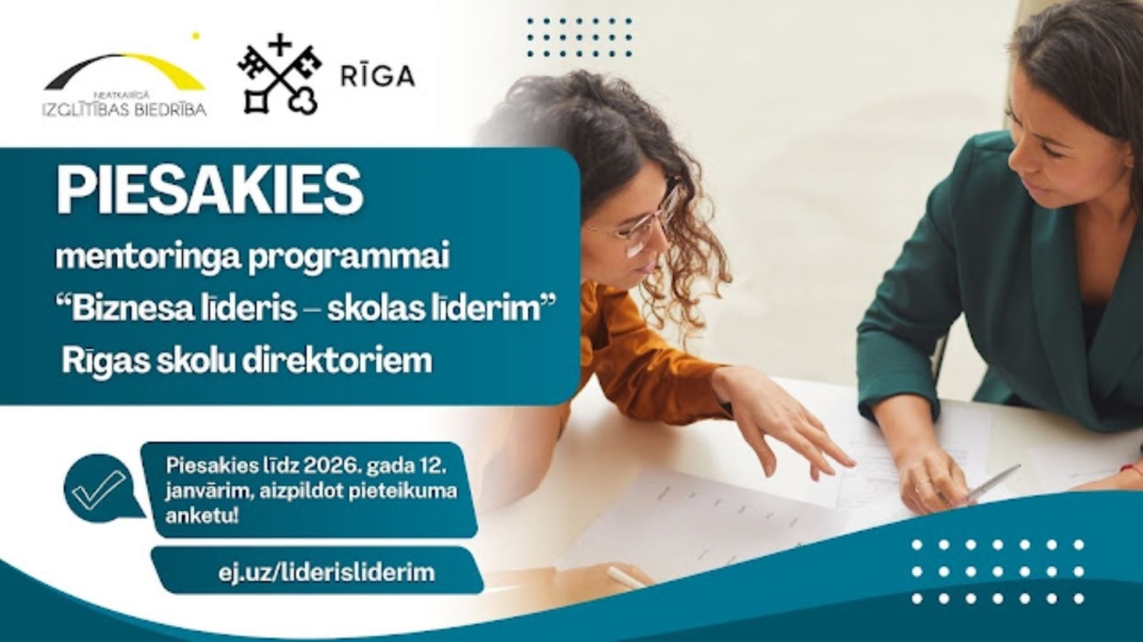 Lai atbalstītu Rīgas pašvaldības izglītības iestāžu vadītājus, Neatkarīgā izglītības biedrība (NIB) sadarbībā ar Rīgas pašvaldību izsludina pieteikšanos trešajai izglītības iestāžu direktoru mentoringa programmai “Biznesa līderis – skolas līderim”.