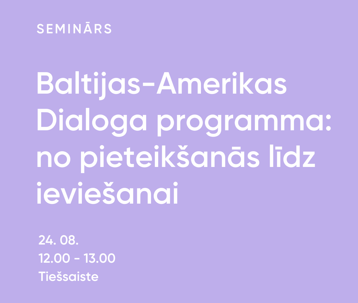 NVO nams aicina Rīgas nevalstisko organizāciju - biedrību un nodibinājumu - pārstāvjus pieteikties informatīvajam tiešsaistes semināram “Baltijas-Amerikas Dialoga programma: no pieteikšanās līdz ieviešanai”. Tiešsaistes…