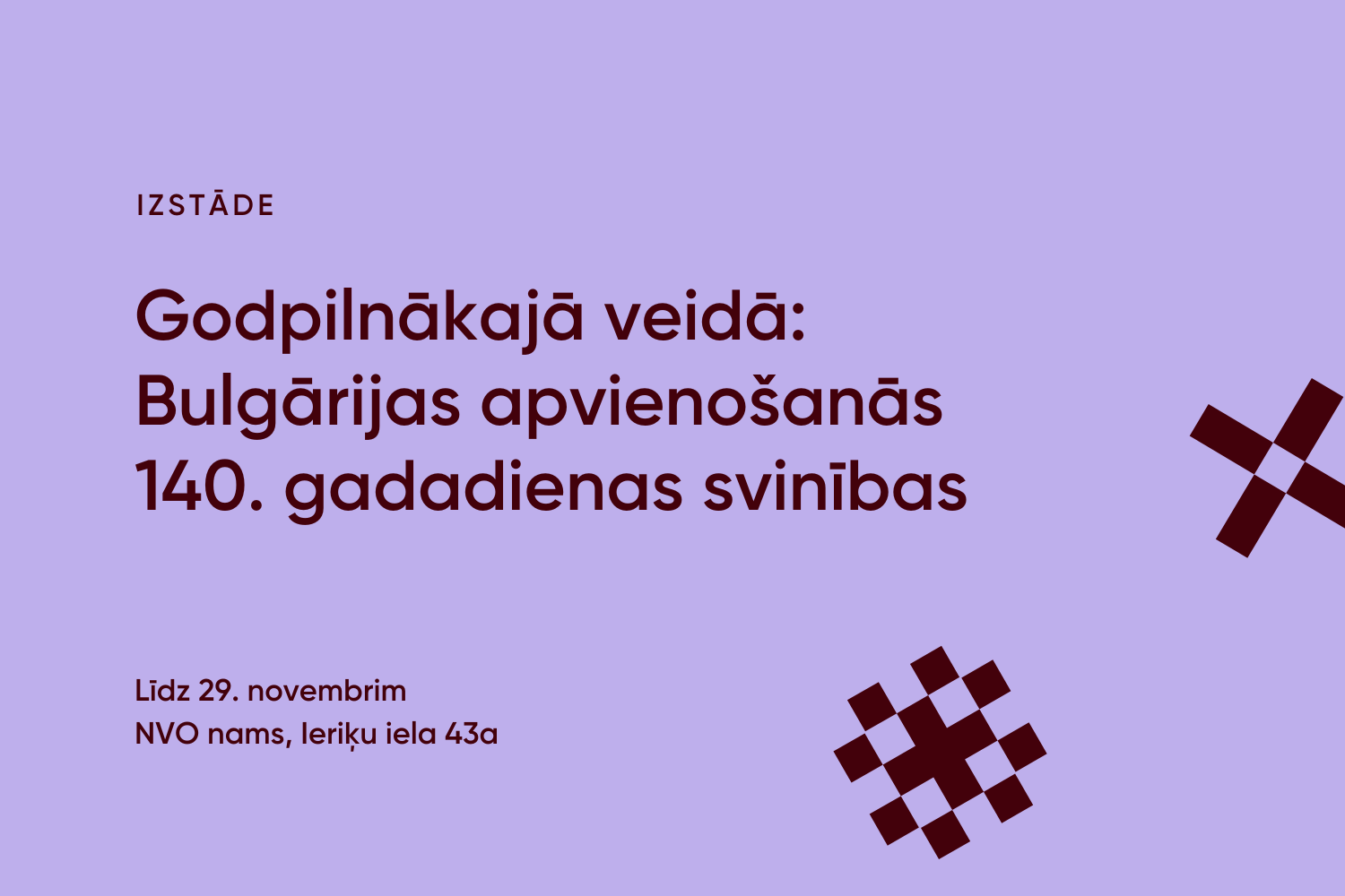 TeikaLīdz 29. novembrim NVO nama 2. stāva gaitenī skatāma “Kirila un Metodija” Latvijas bulgāru kultūras biedrības izstāde “Godpilnākajā veidā: Bulgārijas apvienošanās 140. gadadienas svinības”, kas tapusi sadarbībā ar Plovdivas…