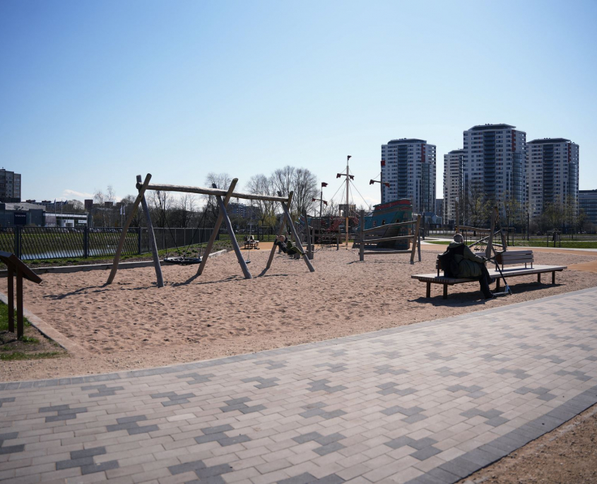 Ēbelmuižas parkā atklāts jauns rotaļu laukums; piemērots arī bērniem ar īpašām vajadzībām