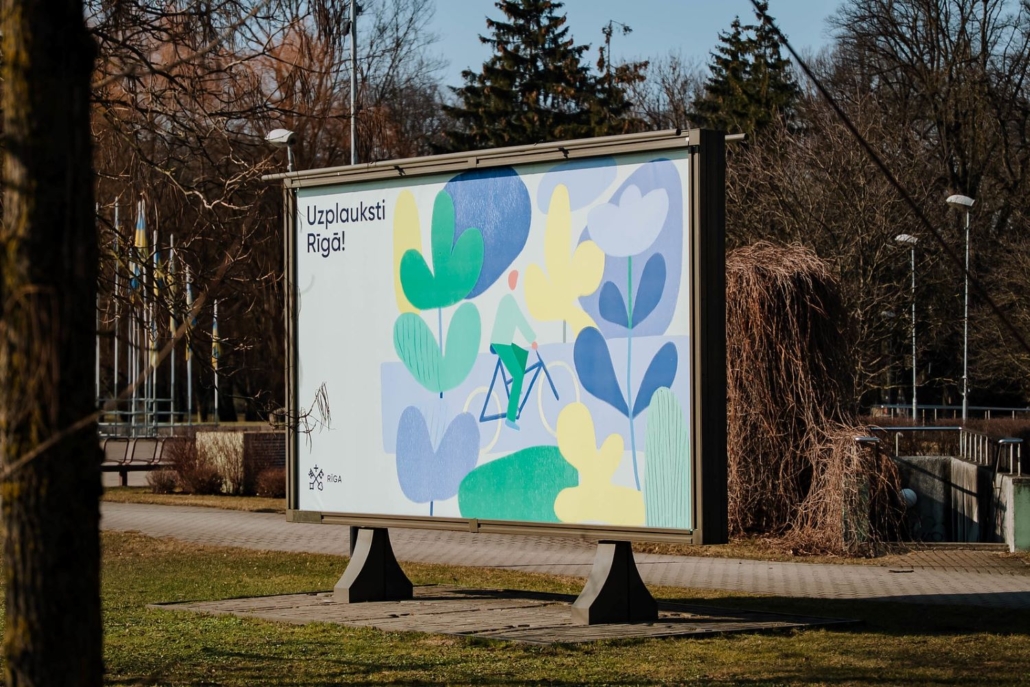 Rīgas ielās, laukumos un parkos redzami krāsaini plakāti, kas grafiski ilustrē pavasara uzplaukšanu pilsētvidē. Tajos izmantoti stilizēti ziedi, zaļumi un Lieldienu simboli —svētkiem raksturīgi motīvi, kurus aicinām pamanīt, pastaigājoties pa pilsētu. Krāsas un stilizētās formas rada viegli uztveramu un pozitīvu svētku noskaņu, kas saprotama dažādām auditorijām, vienlaikus saglabājot mūsdienīgu un atpazīstamu vizuālo valodu.