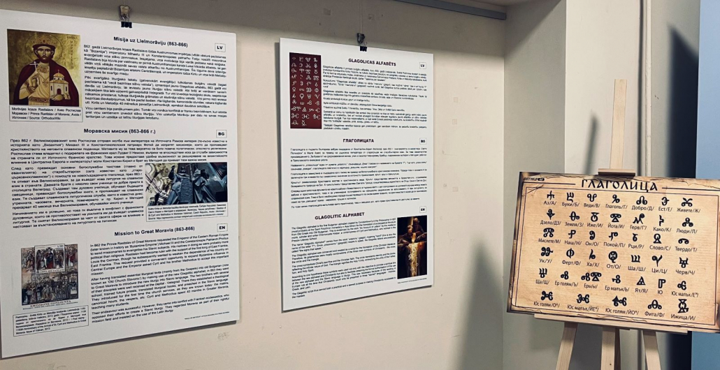 Līdz 26. maijam NVO nama (Ieriķu iela 43a, Rīga) 1. stāva gaitenī ir apskatāma izstāde, ko rīko “Kirila un Metodija” Latvijas bulgāru kultūras biedrība, pieminot divus nozīmīgus pagrieziena punktus Bulgārijas un slāvu vēsturē: glagolīta alfabēta radīšanas 1170. gadadienu un svētā Metodija debesīs uzņemšanas 1140. gadadienu.
