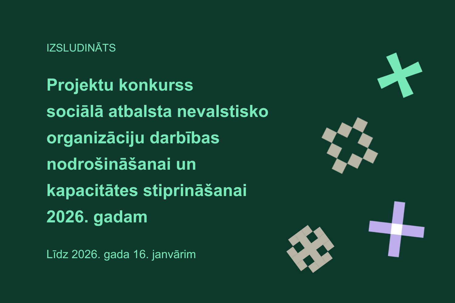 Projektu konkurss sociālā atbalsta nevalstisko organizāciju darbības nodrošināšanai un kapacitātes stiprināšanai 2026. gadam