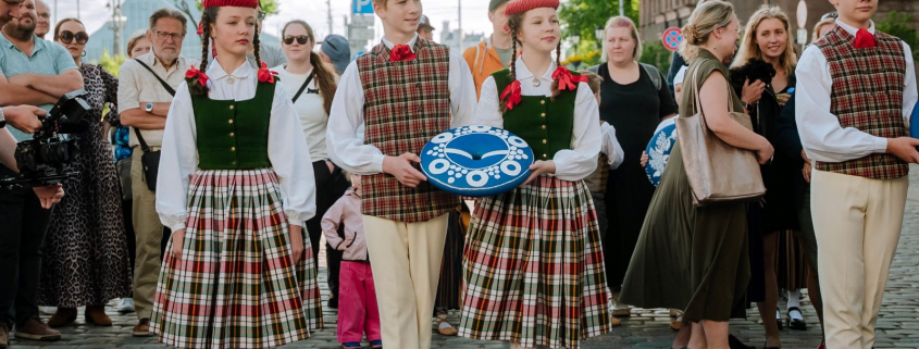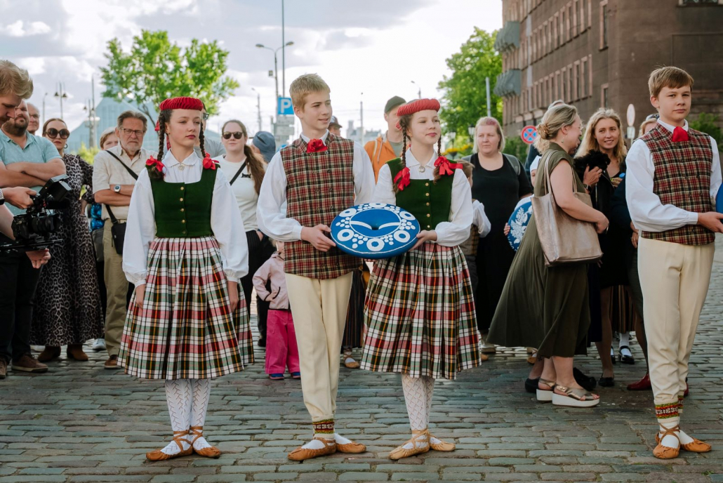 3. jūnijā Rātslaukumā svinīgi nodotas XIII Latvijas Skolu jaunatnes dziesmu un deju svētku dalībnieku apgleznotās pērles, kas tapušas Rīgā ieskandināšanas projekta “Savīšanās ceļš” laikā.