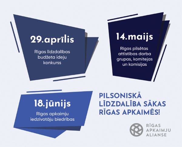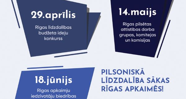 🔹 Otrdien, 29.aprīlī – Rīgas līdzdalības budžeta ideju konkurss – instruments apkaimju attīstībai;