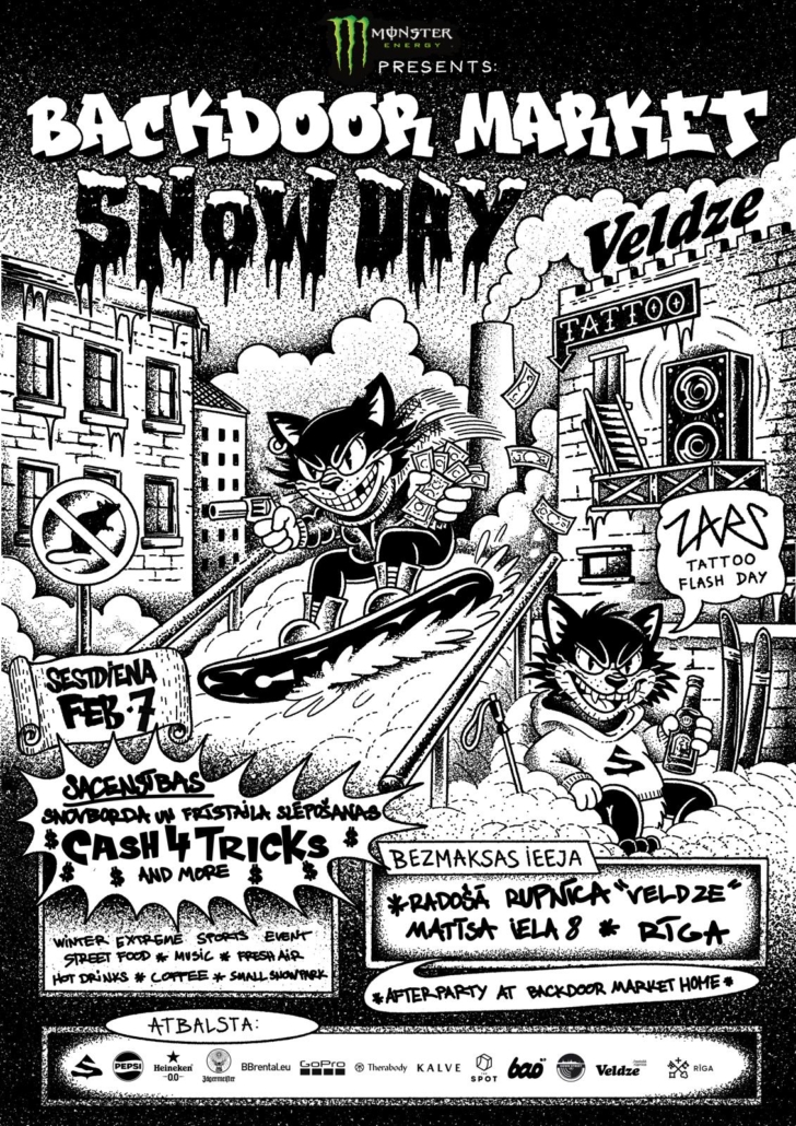 Pasākumā norisināsies snovborda un frīstaila slēpošanas aktivitātes sacensību formātā, pulcējot gan sportistus, gan skatītājus. Sportistu priekšnesumos tiks vērtēta triku sarežģītība, tehnika un stils, piedāvājot dinamisku un vizuāli iespaidīgu pieredzi arī skatītājiem. Dienas gaitā apmeklētājus sagaida ne tikai sacensības, bet arī DJ uzstāšanās, Street food zona, kā arī vakara ballīte pie “Backdoor Market” veikala.