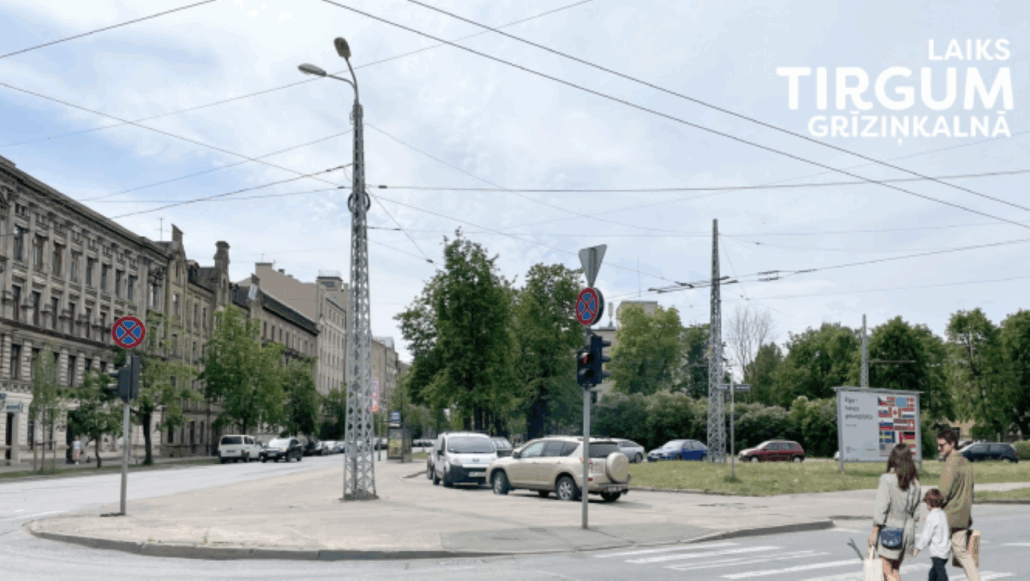 Teritorijā pie krustojuma paredzēts izveidot atklātu laukumu, kas piemērots tirdziņu un citu publisku pasākumu organizēšanai. Plānojums tiks veidots kā atvērta, pieejama vide, maksimāli saglabājot esošo zaļo zonu. Vienlaikus paredzēts saglabāt vēsturiskos stabus, tos restaurējot un atjaunojot ar jaunu, kvalitatīvu krāsojumu.