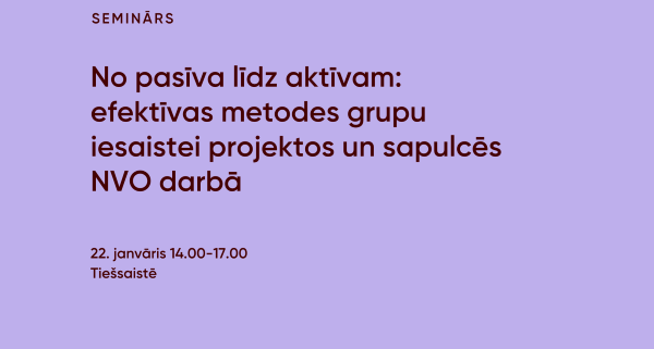Seminārs “No pasīva līdz aktīvam: efektīvas metodes grupu iesaistei projektos un sapulcēs NVO darbā”
