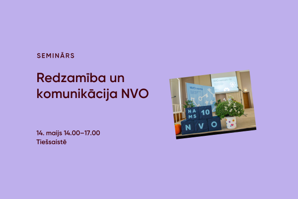14. maijā notika tiešsaistes seminārs “Redzamība un komunikācija NVO”, ko vadīja zīmolvedības un komunikācijas eksperte Lolita Ozoliņa. Dalībnieki ieguva padziļinātu izpratni par redzamības lomu nevalstisko organizāciju darbībā un uzzināja, kā stratēģiski veidot un vadīt savas organizācijas zīmolu, identitāti un komunikāciju.