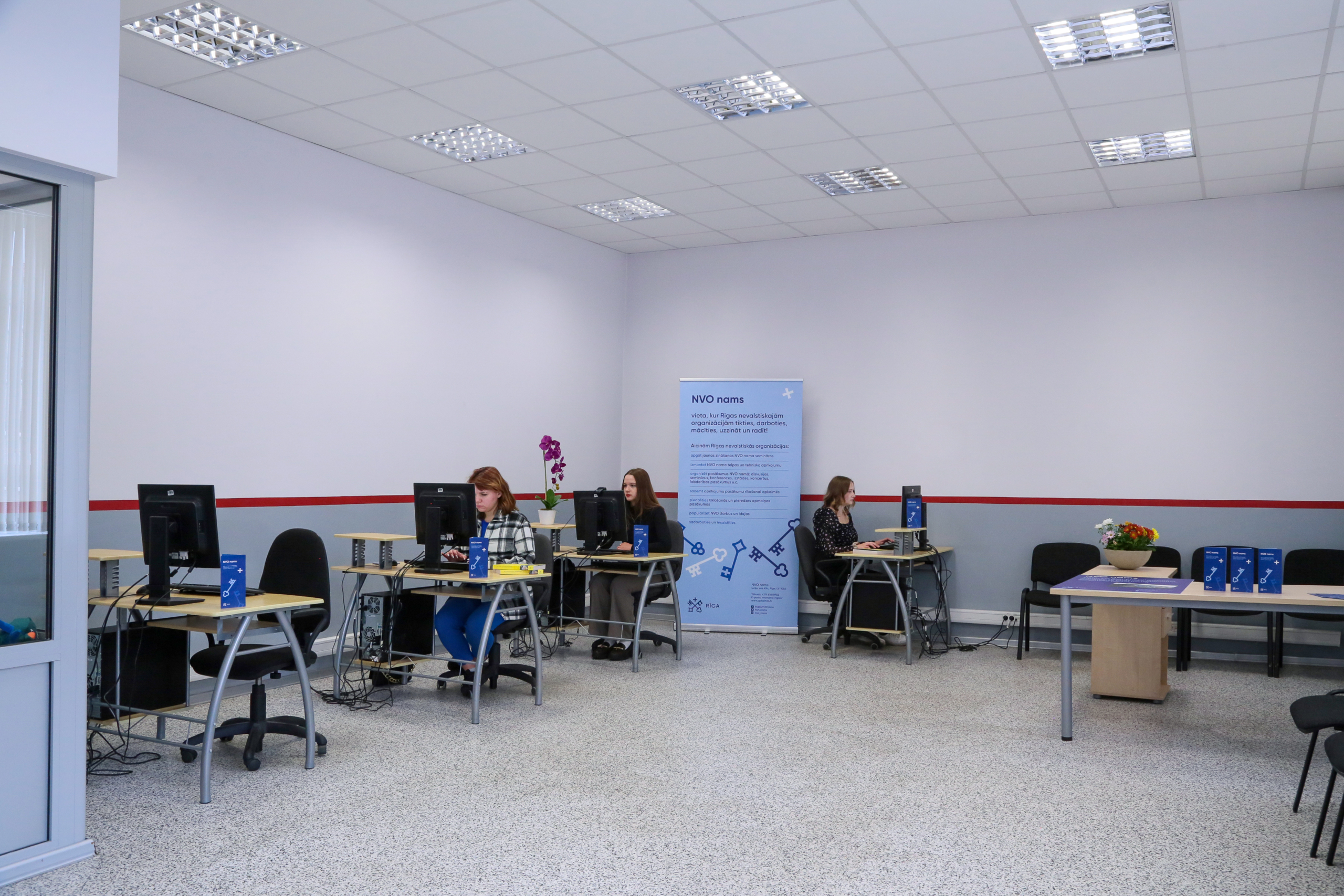Datorklase (201. telpa). Piedāvājam iespēju izmantot datorklasi ar 4 datorvietām. Telpa īpaši piemērota NVO administratīvā darba veikšanai. Telpu var izmantot arī nelielu sanāksmju, diskusiju vai apmācību rīkošanai, pulcējot līdz 10 apmeklētājiem.
