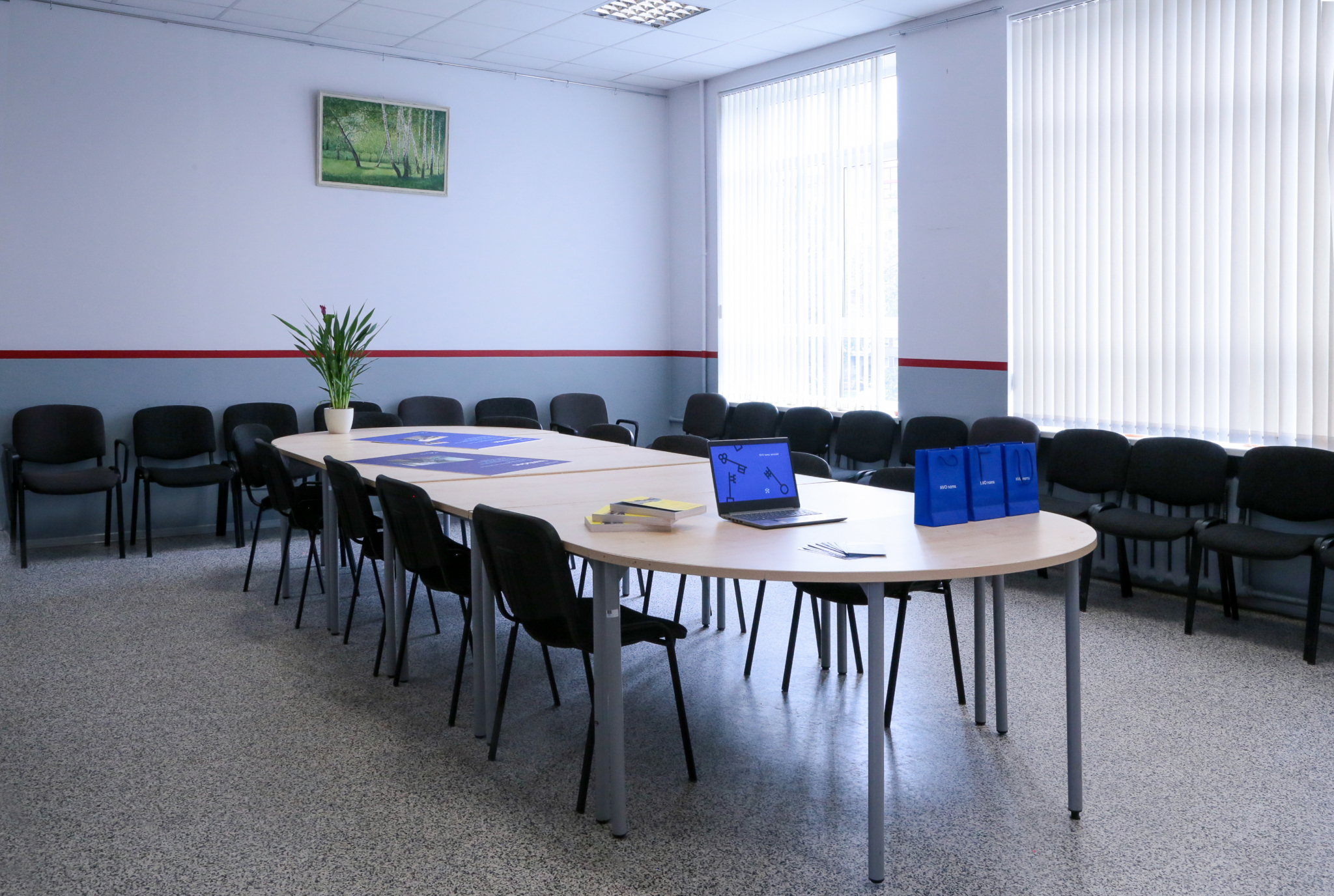 Diskusiju telpa (205. telpa) – ērta un funkcionāla, kas piemērota pasākumiem līdz 35 personām. Telpā atrodas transformējams 6 moduļu konferenču galds, kas ļauj pielāgot telpas iekārtojumu dažādu veidu aktivitātēm.