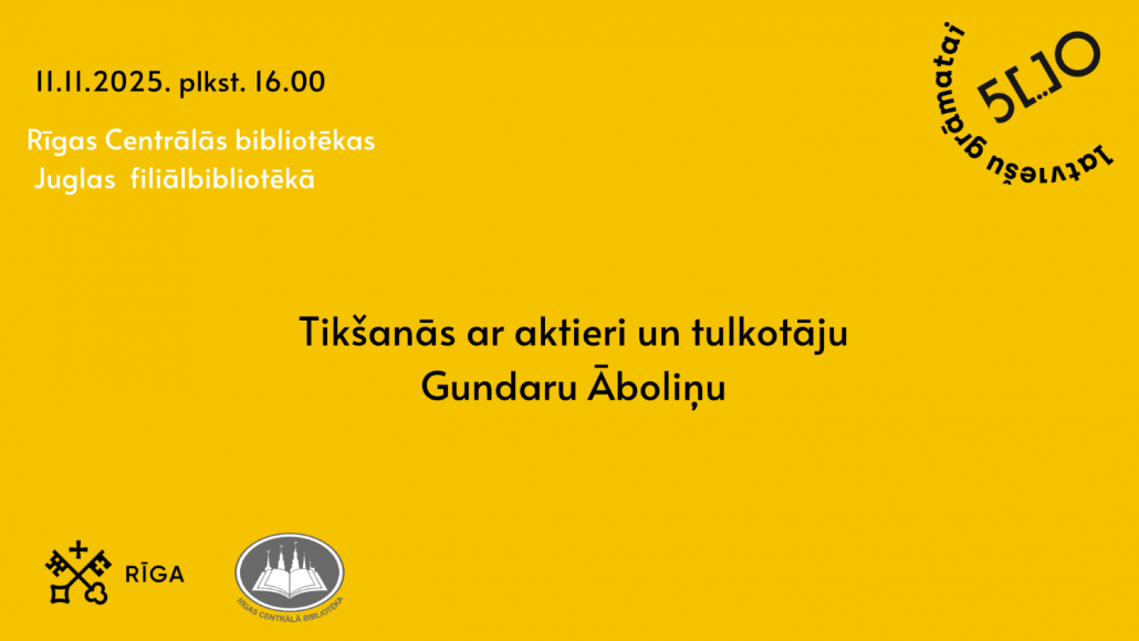 11. novembrī plkst. 16.00 Rīgas Centrālās bibliotēkas Juglas filiālbibliotēkā (Brīvības gatve 430A) notiks tikšanās ar aktieri un tulkotāju Gundaru Āboliņu.