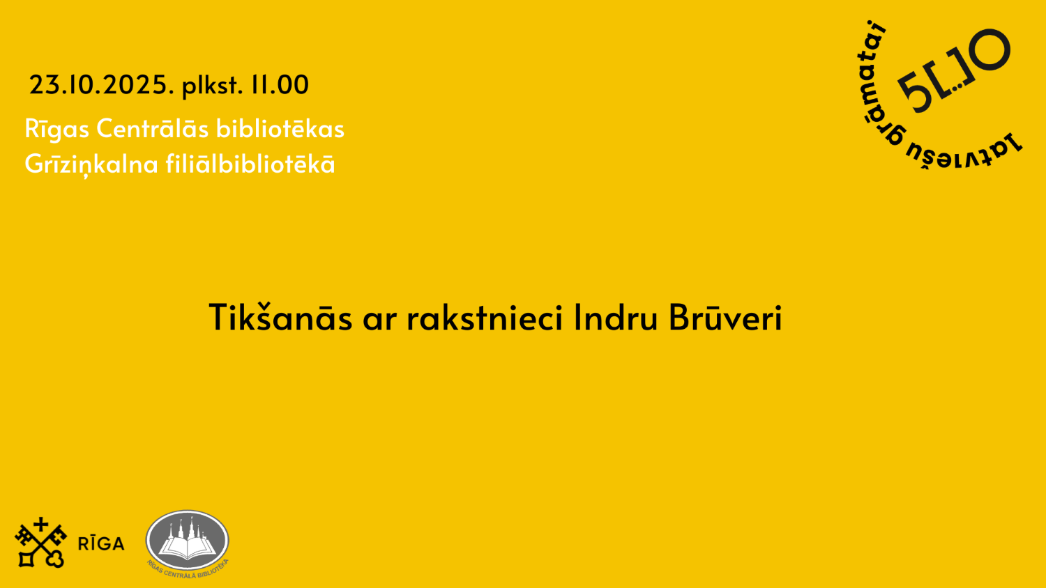 23. oktobrī plkst. 11.00 Rīgas Centrālās bibliotēkas Grīziņkalna filiālbibliotēkā (Alauksta ielā 10) notiks tikšanās ar dzejnieci Indru Brūveri.