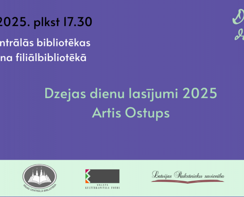 Āgenskalns, Latgale, Teika, Torņakalns, VecmīlgrāvisLatvijas Rakstnieku savienība sadarbībā ar Rīgas Centrālo bibliotēku rīko virkni pasākumu, lai atzīmētu Dzejas dienas 2025. 4. septembrī plkst. 17.30 RCB Torņakalna filiālbibliotēkā (Ojāra Vācieša ielā 2) uz lasījumu aicinās…